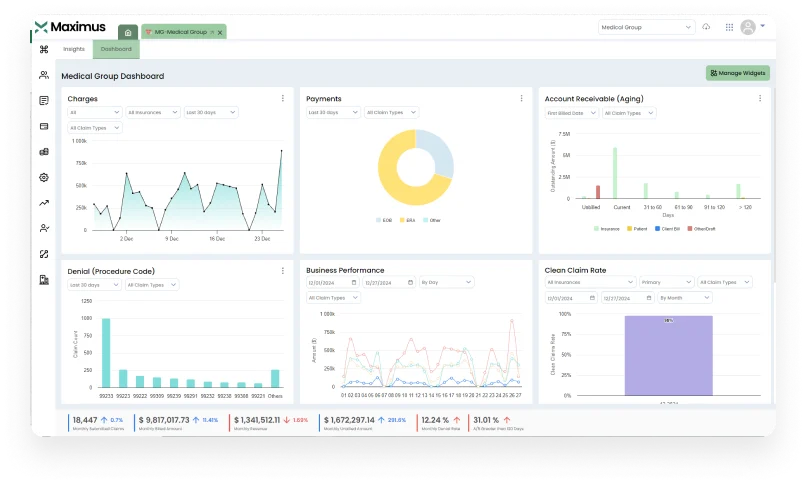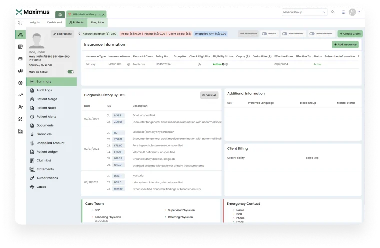 Cloud-based, comprehensive, and simple to implement, Maximus practice management software is built to address the healthcare challenges that almost every provider and practice comes across. It intelligently manages day-to-day operations, enhances patient engagement, and boosts collections efficiency.